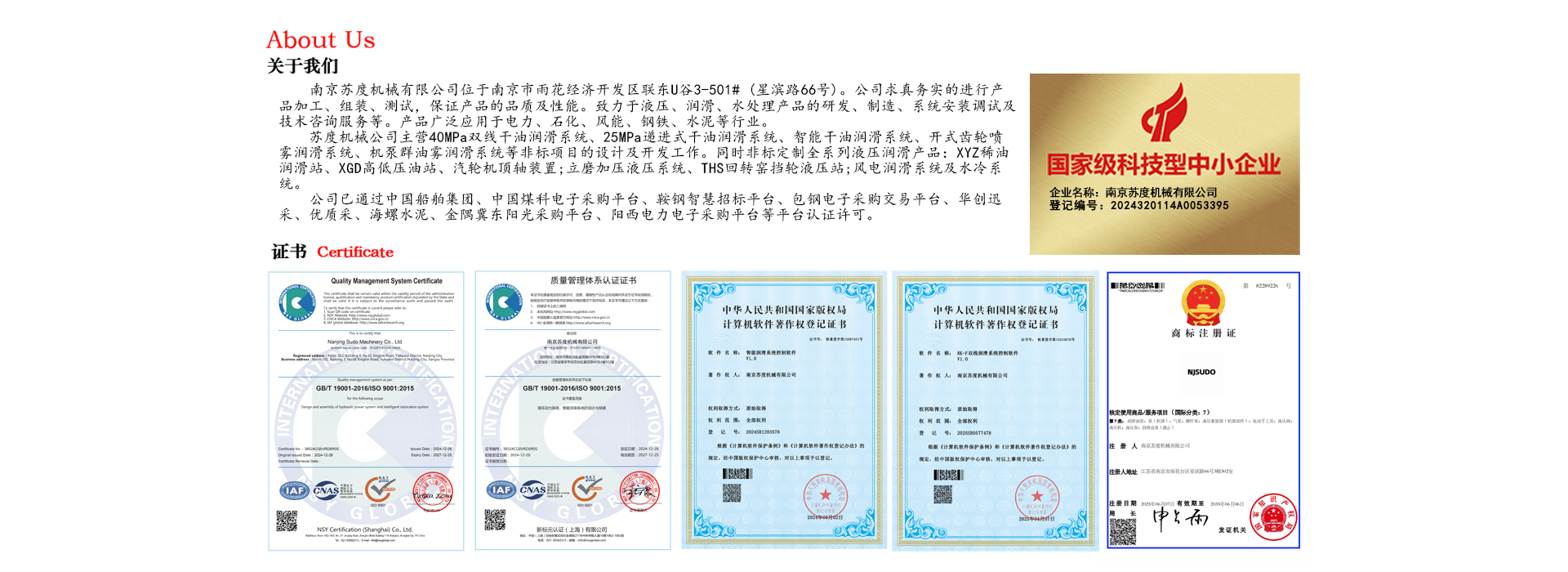 南京蘇度機(jī)械有限公司位于南京市雨花經(jīng)濟(jì)開發(fā)區(qū)聯(lián)東U谷3-502# (星濱路66號)。得益于南京以及長三角地區(qū)的潤滑產(chǎn)業(yè)集群優(yōu)勢資源,公司求真務(wù)實(shí)的進(jìn)行產(chǎn)品加工、組裝、測試,保證產(chǎn)品的品質(zhì)及性能。致力于液壓、潤滑、水處理產(chǎn)品的研發(fā)、制造、系統(tǒng)安裝調(diào)試及技術(shù)咨詢服務(wù)等。產(chǎn)品廣泛應(yīng)用于電力、石化、風(fēng)能、鋼鐵、水泥等行業(yè),長期與國內(nèi)大型的重機(jī)企業(yè)及設(shè)計院合作,潤滑系統(tǒng)隨主機(jī)設(shè)備出口至東南亞、...